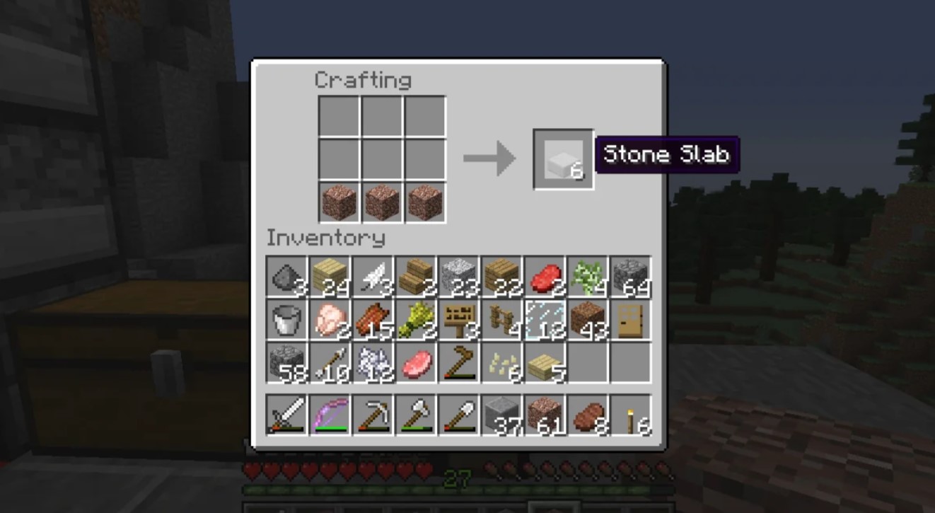 • 3 Smooth Stone (Horizontal Row) = 6 Smooth Stone Slabs